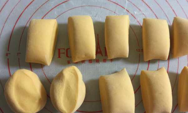 9、接著把長條均勻的分成大小差不多的面劑子,具體的大小可以根據圖片中來操作。