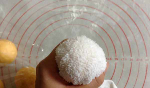 10、把面劑子揉成一個個小圓球,然後用保鮮膜蓋住,防止變幹,然後拿一個幹凈的毛巾,用水沾濕以後擰幹,把小圓球包裹住,定一下型。