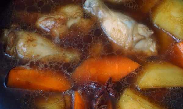 6、最後鍋中加入足量的水,大火燒開之後轉小火慢燉,等到雞翅根充分軟爛就可以瞭。