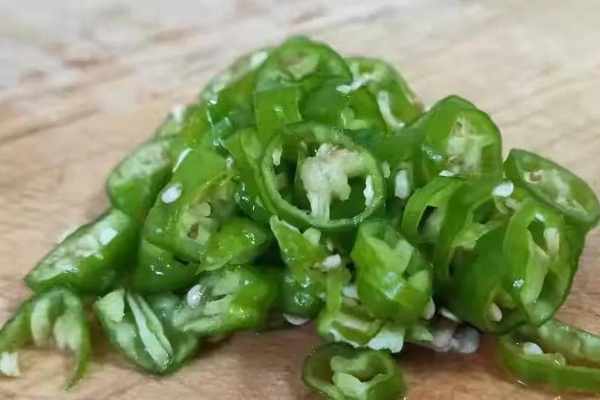 食材:鮮豆角、尖椒、鹽、醋、生抽、香油