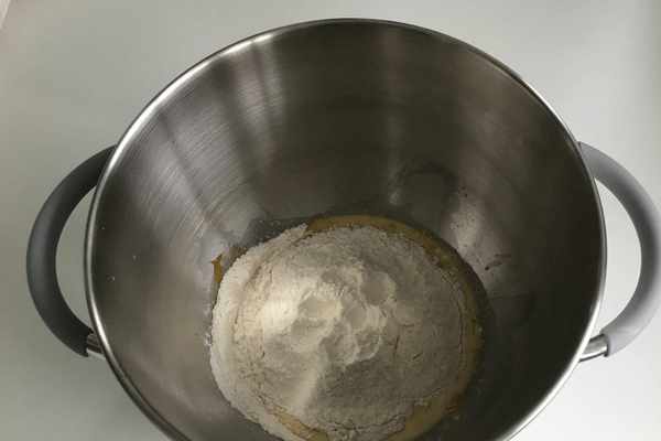 1、首先我們先將所需的食材(除瞭黃油和鹽外的其它所有食材)全部都混合在一起,如圖所示。