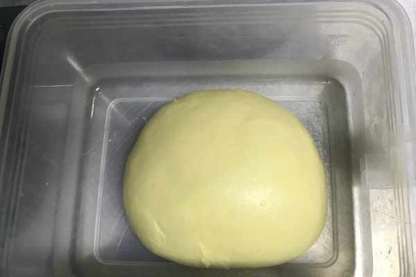 4、將揉好的面團稍做整理(開始在陽臺操作,回到廚房,光線太暗瞭,面團顏色都變瞭哈),放入密封盒中,開始進行發酵,如圖所示。