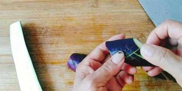 1.茄子洗凈,切成魚鱗狀,然後放一點白醋浸泡十分鐘