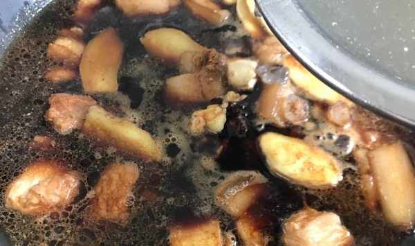 2、燉五花肉要小火慢慢熬,這樣肉吃起來才會香而不膩。