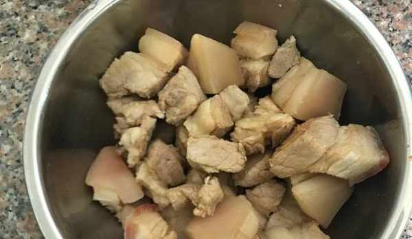 8、然後再將五花肉放進燜燒鍋裡面,先用中小火煮個15分鐘,然後放進燜燒鍋裡面繼續煮個1個半小時,最後再用普通的鍋來收汁即可。