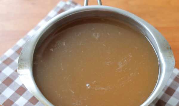 7、最後把湯汁倒在奶鍋裡煮開,按照比例加入冰粉粉攪拌均勻,煮開;