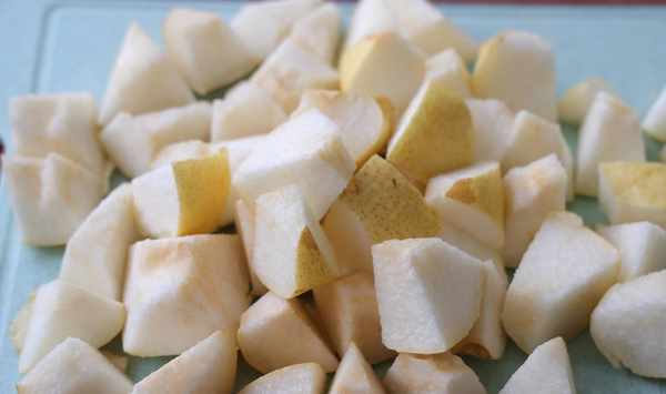 2、雪梨清洗幹凈,不需要去皮,去掉芯,切成小塊;