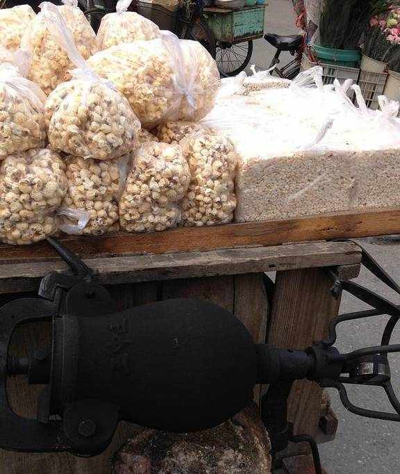 第1個就是老式爆米花,那暫的爆米花都是用機器手搖出來的,跟現在的爆米花是不一樣的,沒有那麼多的添加劑,吃起來特別的香,有用苞米做出來的,也有用大米做出來的,無論那種吃起來都特別的好吃。