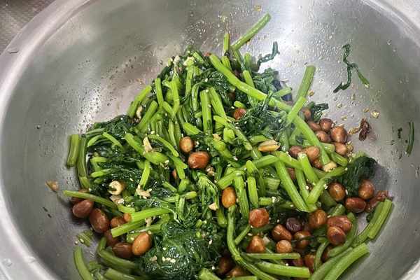 茼蒿涼拌、清炒都好吃,我傢喜歡用茼蒿和花生放在一起涼拌,或者直接涼拌也行,個人覺得花生和茼蒿放在一起,可以增加菜的口感,吃起來也更香,十分鐘就能端上桌,建議大傢可以試試。