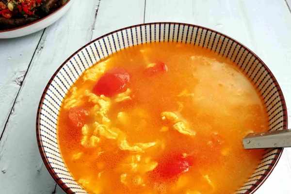 夏天,我們傢餐餐都要有湯,不然幹巴巴的,一點胃口都沒有,飯前喝碗湯,可以增進食欲。這道番茄雞蛋湯是我的最愛,把雞蛋和番茄炒過再煮湯,香味更濃鬱,酸酸的特別開胃。起鍋燒油,冒煙後再倒入打散的蛋液,快速劃散,盛出,放入番茄,炒出湯汁後,再放入雞蛋混合,倒入足夠的清水,大火煮開,加入鹽拌勻,即可出鍋裝盤,簡單又美味!
