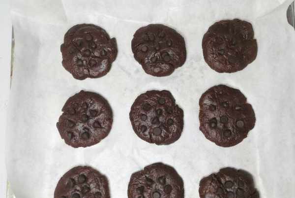 2、面團醒好後分割成15克左右的小面團,團圓再按壓成小圓餅,裝飾上耐高溫巧克力豆,擺入烤盤中入烤箱;放烤箱中層,開上下火170°烤20分鐘左右,根據上色情況出爐;出爐後稍微晾涼,就可以享用香酥的巧克力餅幹瞭。