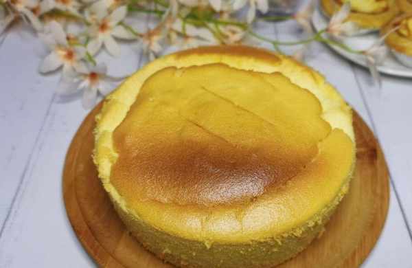 4、將打蛋白霜分兩次調入蛋糊內,上下翻拌調均勻,這步盡量操作快一些,以免消泡過快,蛋糕不松軟;調好的蛋糕糊倒入6寸模蛋糕具中,輕震幾下排出大氣泡,放入預熱好的烤箱內,上下火150°烤50分鐘左右;蛋糕出爐後,倒扣在烤架上徹底晾涼,就可以享用松軟的戚風蛋糕瞭。