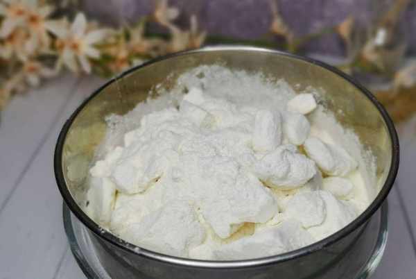 2、面粉蒸好後要立即取出,以免有濕氣打濕面粉結塊成面團;取出後揭去保鮮膜自然放涼,這時因蒸制過得緣故面粉有些結塊,用勺子將面塊敲散,邊敲邊用細紗網過濾出細粉,全部過濾完,低筋面粉就做好瞭。