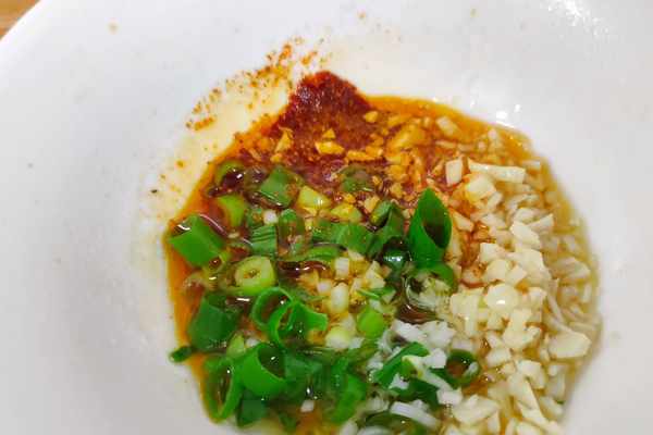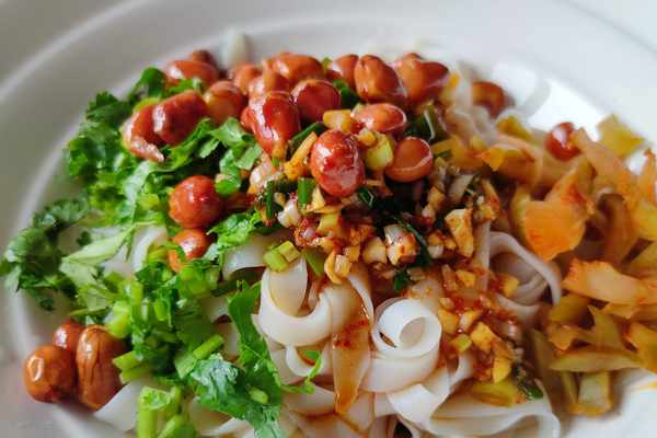 4、最後撒上香菜,放入炸好的花生米,根據個人喜好可加榨菜或咸菜。