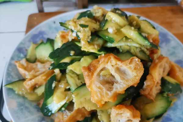 黃瓜拌油條黃瓜拌油條是老一輩的吃法,現在已經很少有人這樣做瞭,在80、90年代生活水平貧苦,油條在當時是非常稀罕的,在宴席上都有黃瓜拌油條這道菜。