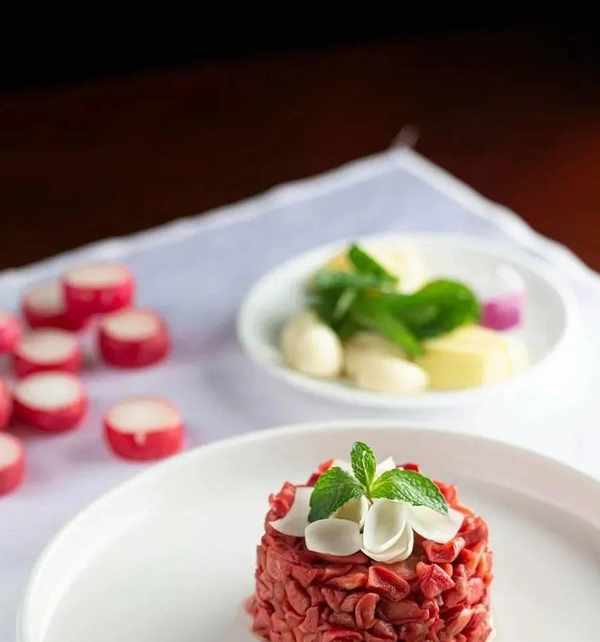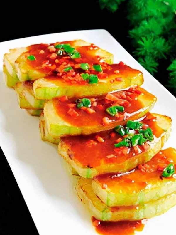 冬瓜是很常見的食材,但是做法比較單一,而且幾乎隻能作為配料出現在菜品中。我們將冬瓜切成大塊,用色拉油煎至成熟,再搭配用肉粒、燒汁調制的醬汁成菜,給食客帶來瞭新鮮感,也賦予瞭冬瓜更精彩的味道。
