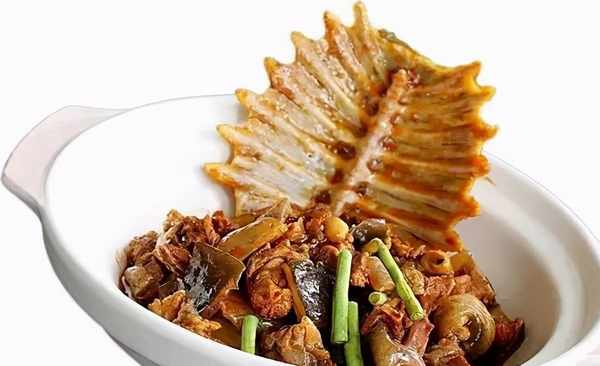 2.鍋裡放菜油和豬油燒熱,投入大蒜瓣和蔥節先炒香,摻鮮湯並放入甲魚塊和秘制醬以後,改小火燒30分鐘,再放入小土豆和豇豆,燒至熟透便可出鍋裝盤。