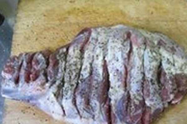 羊腿洗凈,並將表面的肥肉和多餘的油脂去除掉。