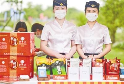 鄭州市民熟知的解傢味道、五順齋烤鴨、方中山胡辣湯、須水鄧記叫花雞、張老熗方城熗鍋燴面紛紛登場。在五順齋烤鴨攤位前,樊師傅從保溫箱內取出一隻冒著熱氣的烤鴨,他熟練地運刀片鴨,將軟嫩的鴨肉蘸醬放在荷葉餅上,之後搭配蔥絲和山楂條,細心地卷好再送到遊客的手中。