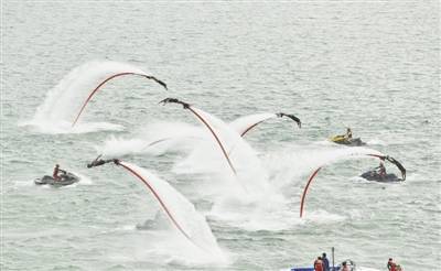 “造浪”生活嘉年華活動開展期間,這樣驚險刺激的表演將持續上演,水上飛人既能在空中飄浮翻飛“騰雲駕霧”,又可以在水底潛行“魚躍翻騰”,給遊客帶來更多激情享受,讓遊客近距離感受水上運動的魅力。