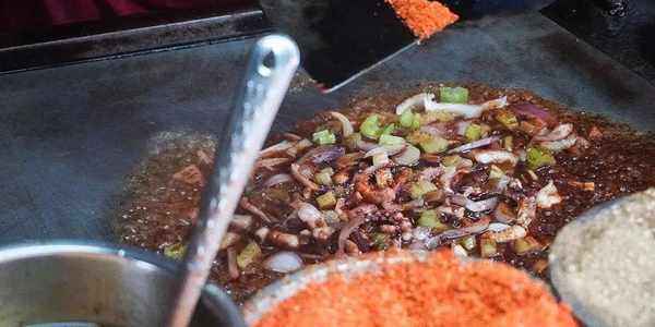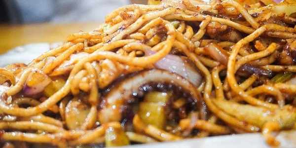 炒面包裹著醬汁,