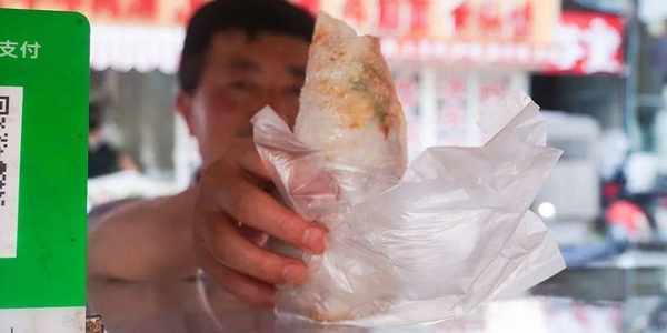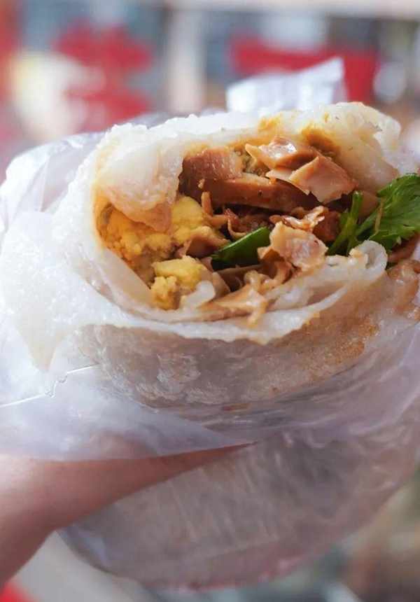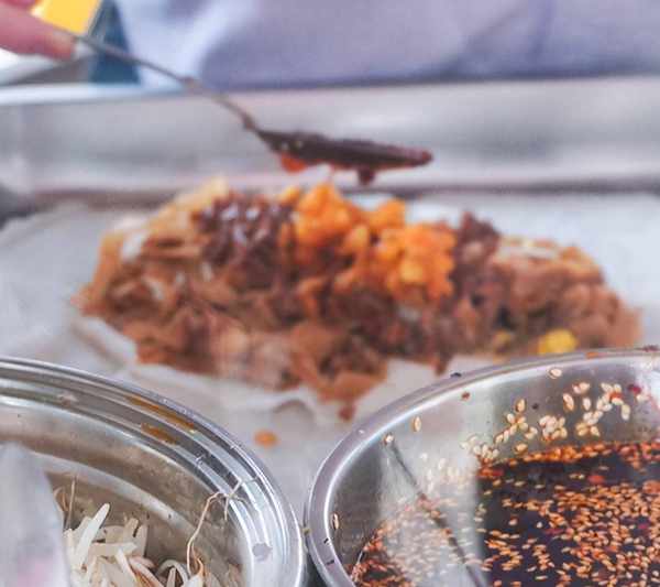 薄薄的餅皮上,鋪著各式菜品,