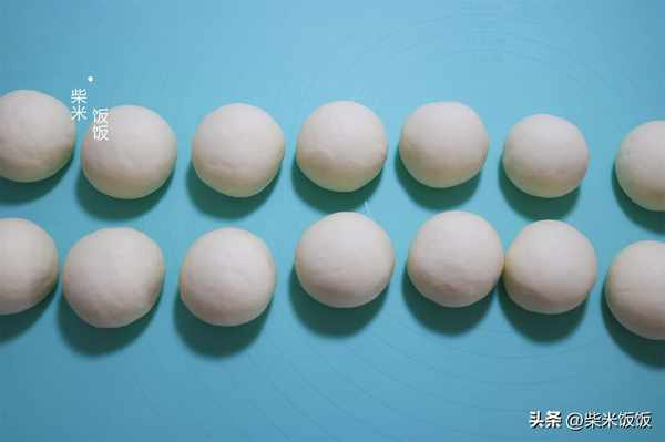 7,面團醒發好瞭,移到揉面墊上揉搓排氣。然後搓成長條,分成14個小劑子,再分別揉光滑。