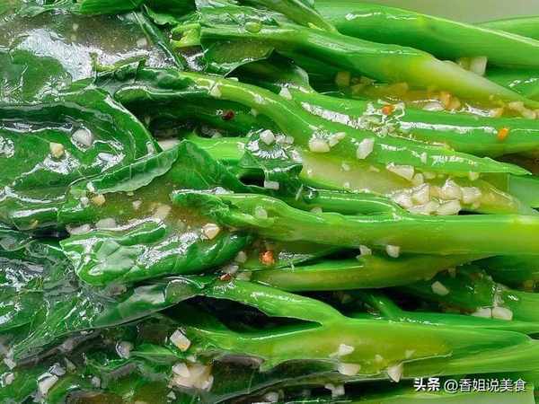 5、再將料汁淋在芥蘭上,就可以上桌開吃瞭。