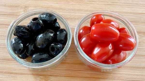 3.火腿切片擺盤,再備些橄欖和聖女果