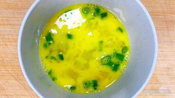 2、把雞蛋打入碗內,再取幾根香蔥摘洗幹凈後瀝幹水分,放在案板上切成小碎段,然後把蔥段放入雞蛋內,裡面加入少許的鹽,迅速的攪散備用。