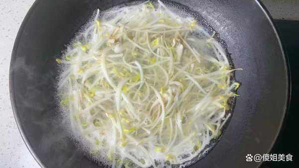 3、適量的黃豆芽用清水多沖洗幾遍,然後放入鍋中,加適量的水,先把鍋中的黃豆芽焯水,去除裡面的豆腥味,焯水以後撈出來,再次換清水,把焯水的豆芽重新放入鍋中,大火煮開。