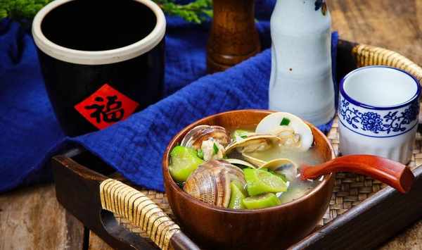 【鮮美絲瓜湯】所需食材:絲瓜、蛤蜊、薑絲、鹽、胡椒粉、料酒、食用油