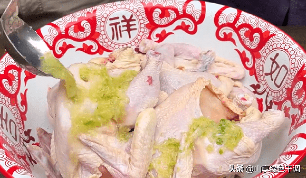 4.把醃料水均勻的塗抹在雞身上,主要起到去腥除異的作用。醃制半個小時後,用水把雞清洗幹凈。
