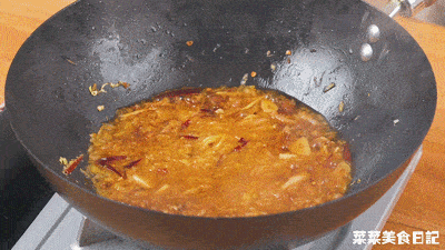 5.鍋燒開,放入冷油五花肉煸炒後加入配料炒香倒入酸菜炒散,然後加入沒過酸菜的開水·酸菜因為擠幹會黏成一團,需要炒散再讓它吸滿湯汁。