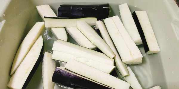 2.將浸泡好的茄子,蒸熟,放涼備用。