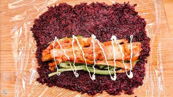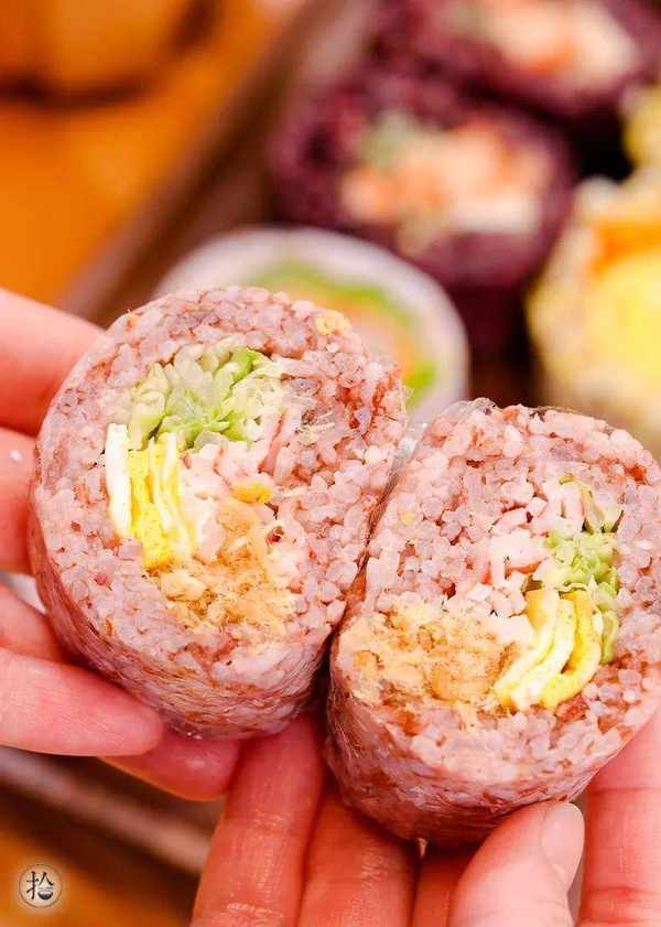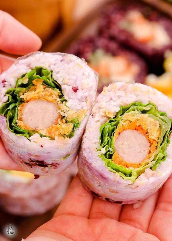 賣相很贊,色彩靚麗,讓人不自覺被吸引,圓滾滾的一個,料多超滿足。紫米飯香氣四溢,糯度恰到好處,包裹著酸甜開胃的泡菜,更令人食欲大開,還有青瓜絲和雞胸肉的加持,口感層次豐富,令人回味無窮。