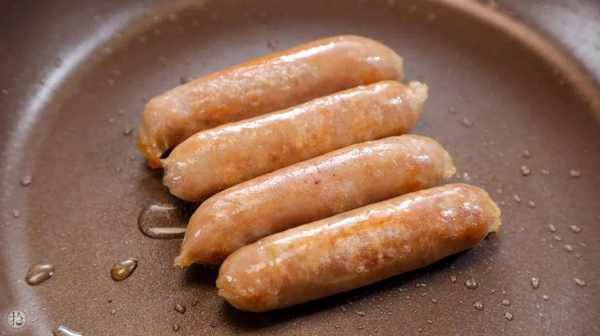 1.平底鍋熱鍋少油,放入肉腸,煎至肉腸焦黃盛出待用。