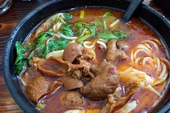 小鍋米線,用高湯的精華和純天然的食材。挑逗你的味蕾。米線是來自純手工制作,Q彈有勁道。湯料足足用瞭8小時熬制。有來自貴州的辣椒、