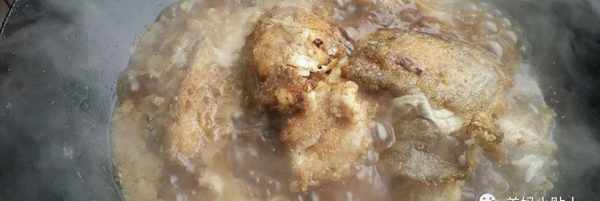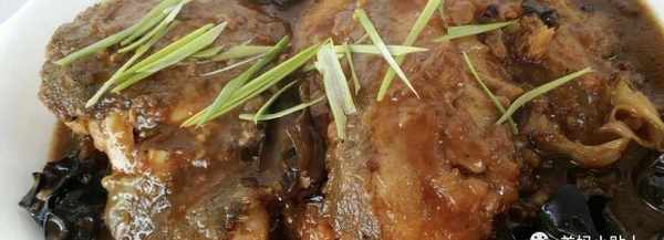 4.提前調一碗醬,加入生抽老抽,蠔油,雞精,加入一碗水攪拌均勻。鍋裡放油燒熱,把薑片大蔥白放進去炒香,然後放入魚塊,不要翻動,加入調好的料汁,把木耳放進去,蓋蓋子中小火燜8到10分鐘。
