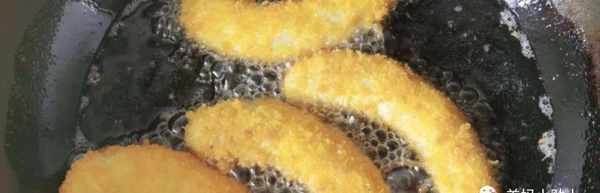 4.鍋裡放入大量的油,油溫至7成以後,把香蕉放進去,先不要著急翻動,中火慢慢炸,炸定型再翻面,炸到變金黃色表皮脆瞭就可以撈出來瞭。