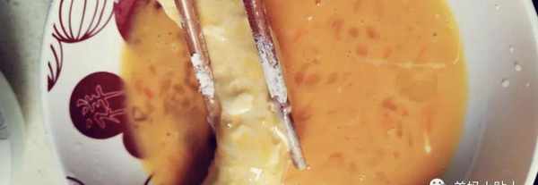 2.然後兩個雞蛋打入碗中,攪散,把香蕉放進去裹滿雞蛋液。