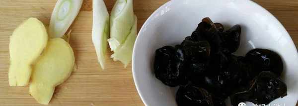 3.然後切一點薑片,大蔥白,提前泡幾朵木耳備用。