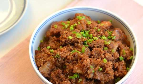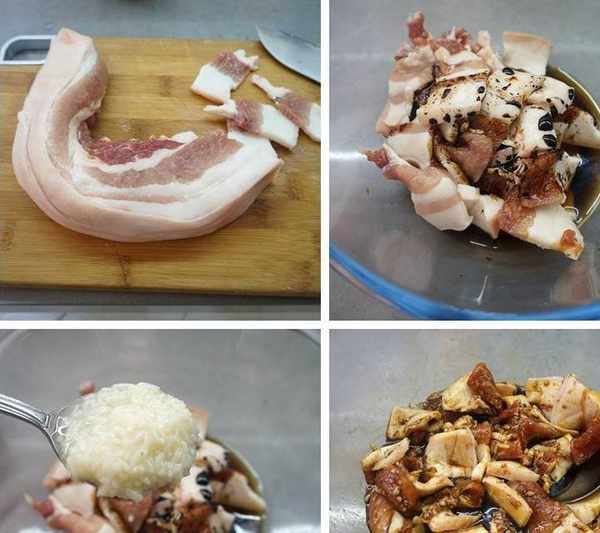 材料:豬肉400克,自制米粉100克左右,醬油適量,生抽少許,鹽少許,醪糟一大勺,涼水少許,香蔥少許