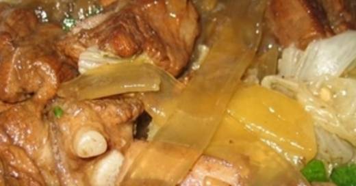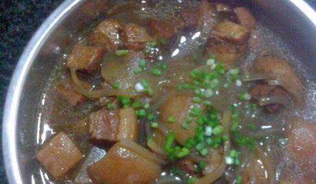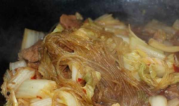 主料五花帶皮豬肉500克、粉條100克,大白菜葉250克、香菜10克。