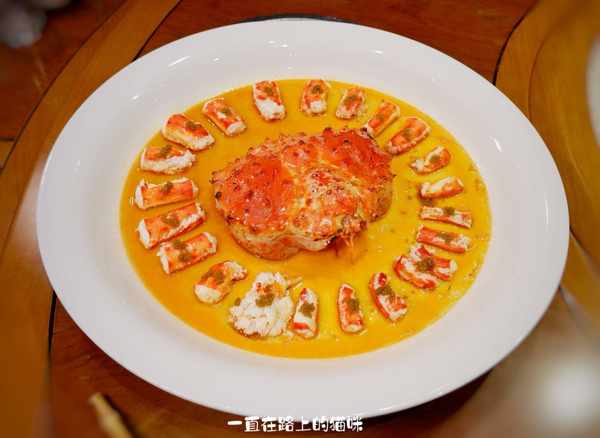 今天的大菜瞭,擺盤霸氣看起來就有食欲,蟹腳肉都剔出放在蛋羹上一起蒸,蟹肉鮮甜細膩,蛋羹滑嫩,上面加瞭魚子醬增加瞭咸鮮味。