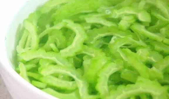 苦瓜焯燙以後記得要冰鎮,是保持苦瓜顏色翠綠和口感爽脆的關鍵步驟。