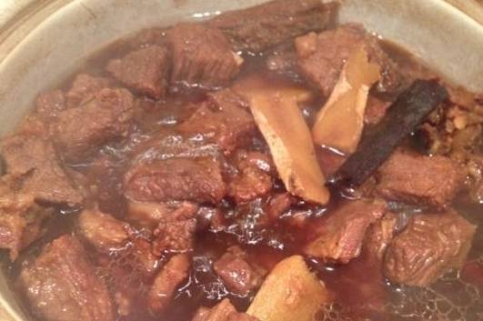 等水沸騰後將牛肉放入鍋中,加入老抽,生抽各50克,料酒大約兩勺,鹽適量大火燒開後轉小火燉煮40分鐘。