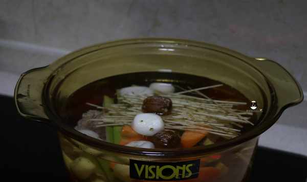 大火燒開10分鐘後,轉小火蓋蓋煲40分鐘。