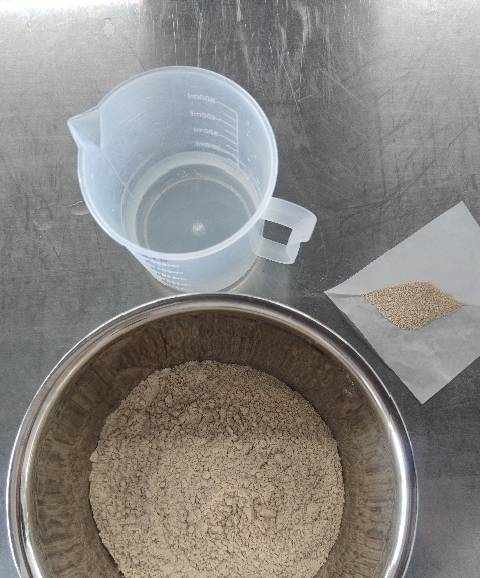 1.配料:稱取中裕高纖維麥芯粉200克,幹酵母2克,純凈水120~130克(加水量可根據饅頭軟硬喜好調整)。