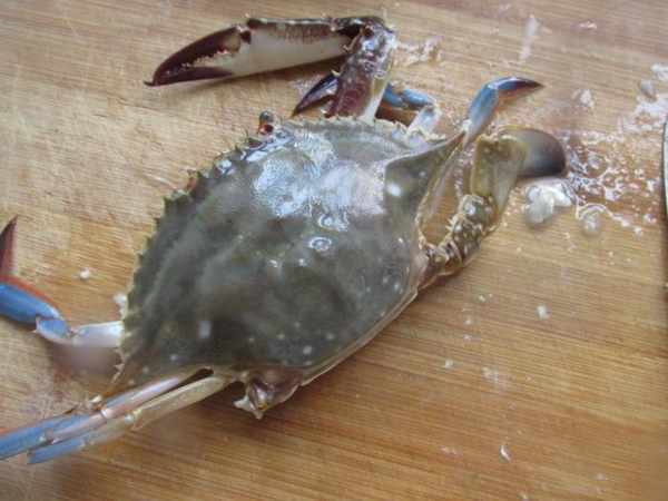1,挑選梭子蟹,需要選擇甲殼青灰色、有光澤的,腹部是白色,可以用手捏一下蟹爪,飽滿的其中蟹肉多。